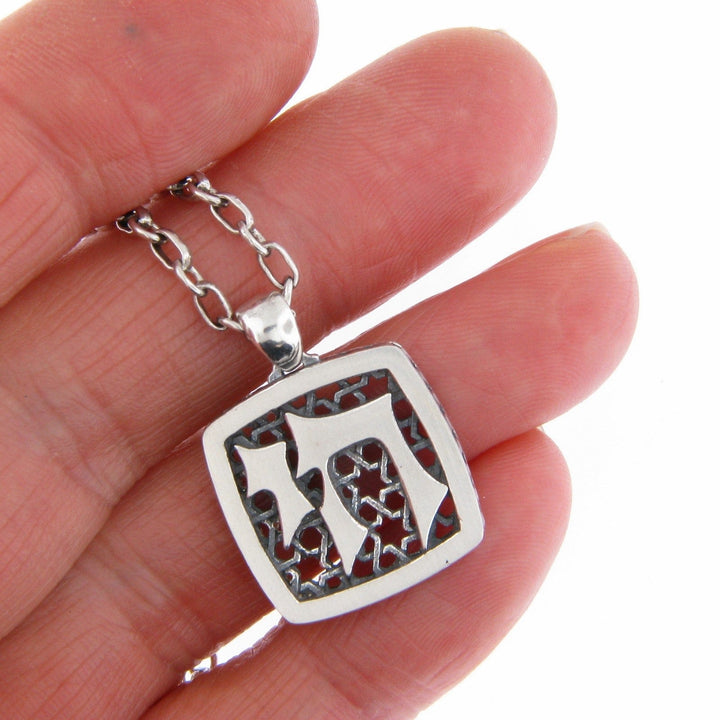 Chai Pendant Necklace Silver Antique Rolo Chain