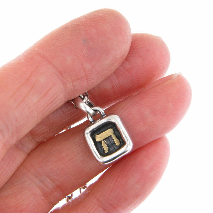 Chai Pendant Necklace Silver Vermeil Antique Rolo Chain