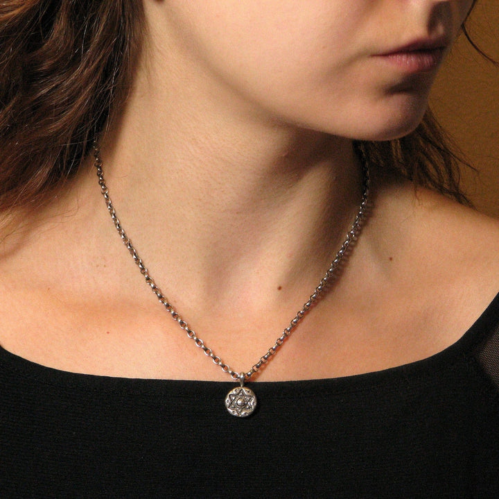 Contemporary Modern New Age Star of David Pendant Necklace Silver Antique Rolo Chain Mens