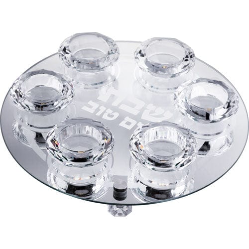 פמוט זכוכית עם 6 פמוטי קריסטל מהודרים 25 ס"מ