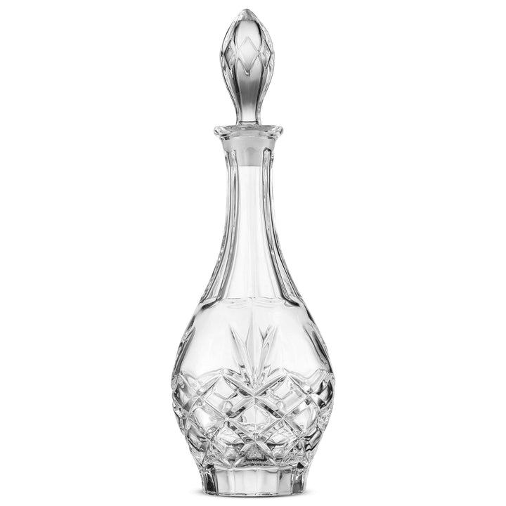 Elegant crystal decanter with intricate cut detailing and decorative stopper. Perfect for wine aeration and makes an excellent gift.