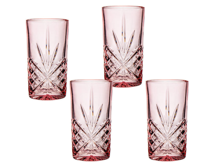 DUBLIN BLUSH S/4 11oz DOFs, DUBLIN BLUSH SET/4 HIGHBALLS, DUBLIN BLUSH BASE SHOOTERS |