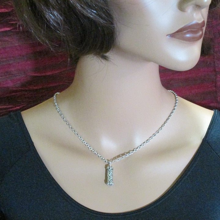 Filigree Mezuzah Pendant Necklace Silver Rolo Chain Shema scroll on Antique Rolo Chain
