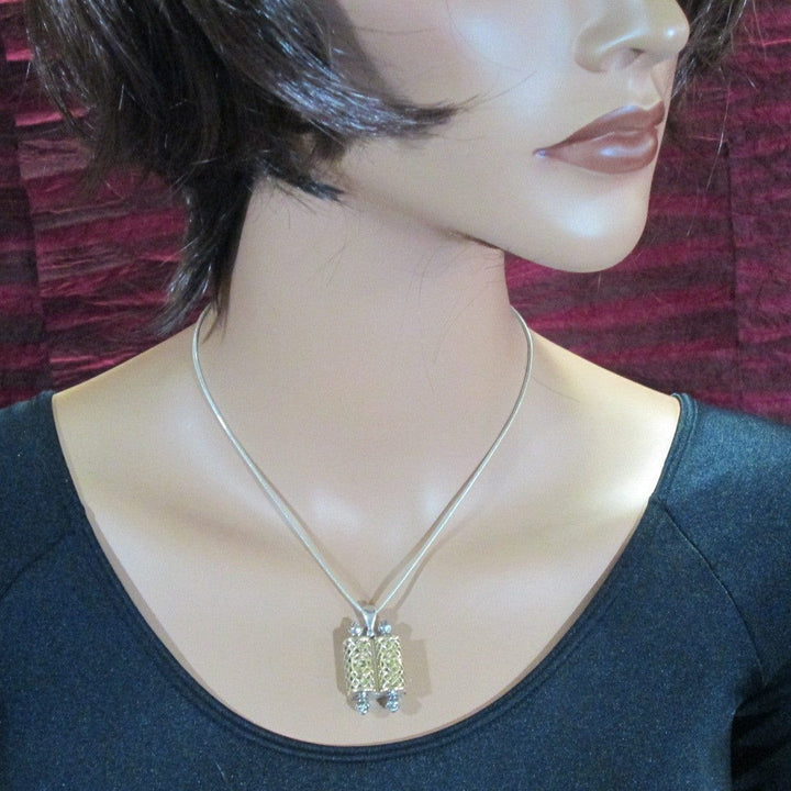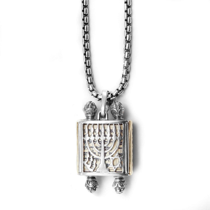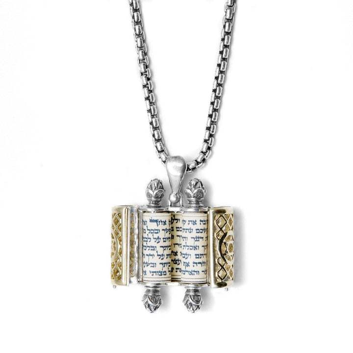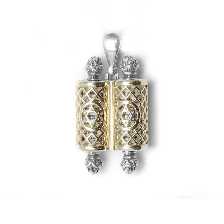 Filigree Torah Scroll Pendant Silver 14K gold Shema scroll Mens