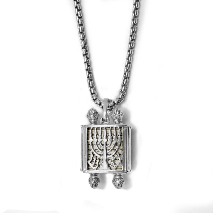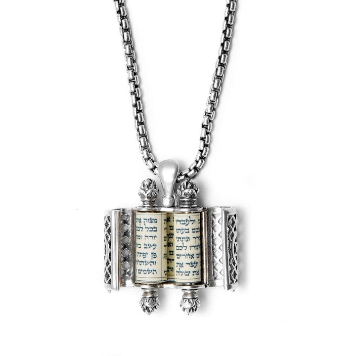 Filigree Torah Scroll Pendant Silver Shema scroll Mens