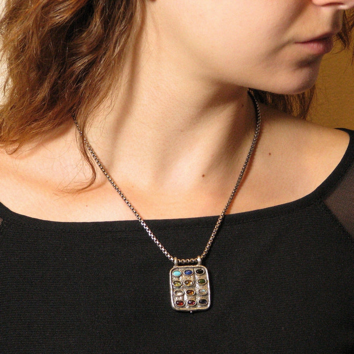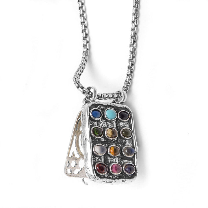 Hoshen 12 Tribes Aaron High Priest Breastplate Pendant Necklace Silver Semi-precious Stones on Rounded Box Chan