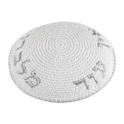 Knitted Kippah 16 cm- White with Silver Embroidery