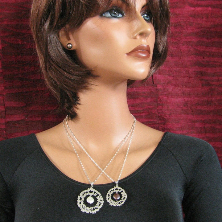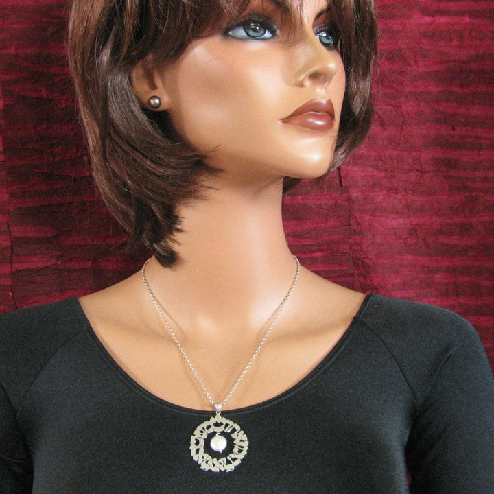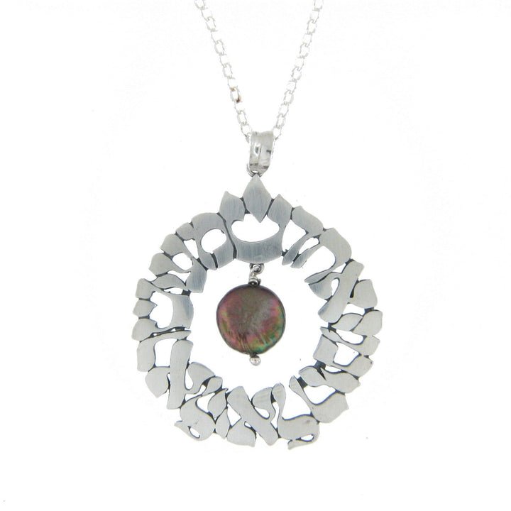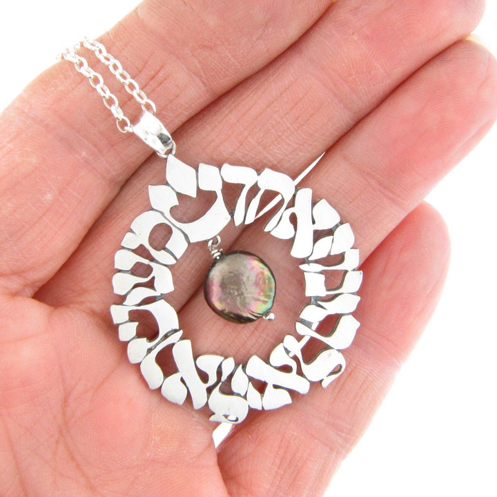 Large Circilar Shema Sh'ma Yisrael Pendant Necklace Silver Black Coin Pearl Rolo Chain