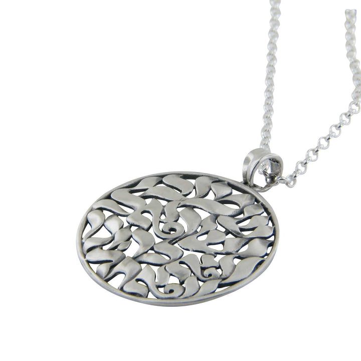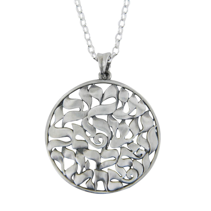 Large Shema Sh'ma Yisrael Round Frame 3D Pendant Necklace Silver Rolo Chain