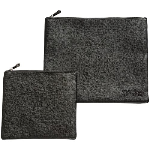 סט טלית תפילין דמוי עור עם ריקמה 36*29 ס"מ