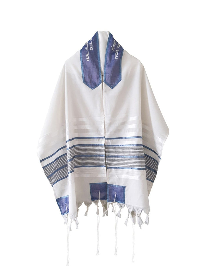 Basic material Wool or Polyester. Sold in a set of Tallit bag and kippah.Standard Shawl Size: 20" x 72" / 50.8 x 183 cm.