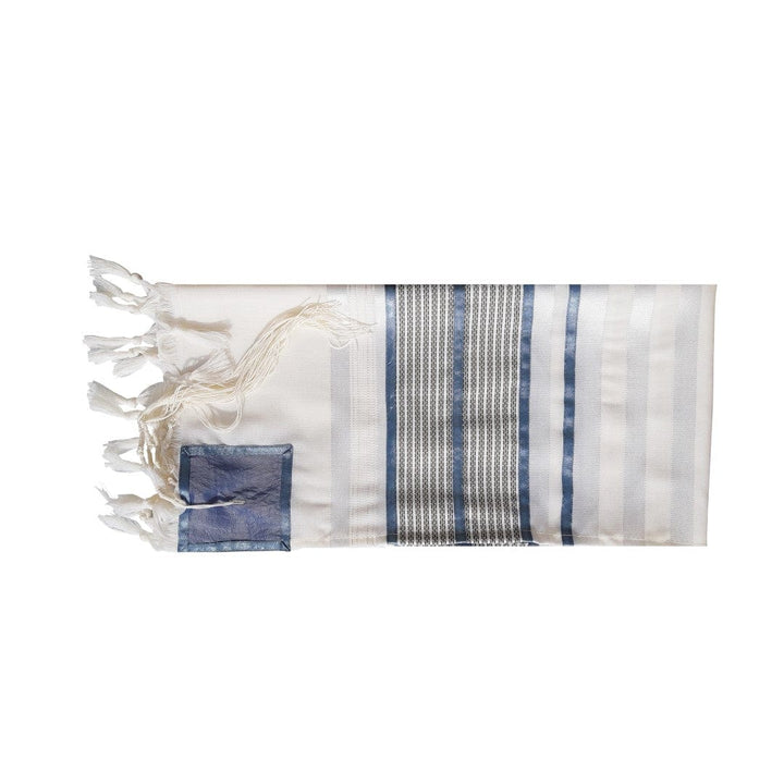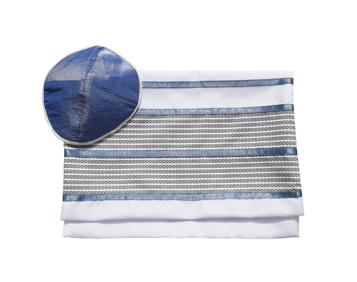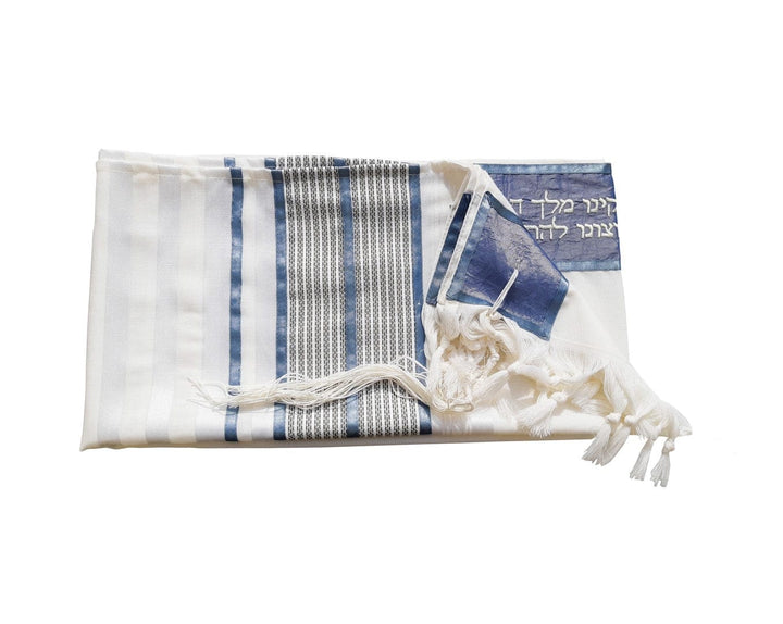 Smoked Blue with Light Blue Stripes Tallit, Bar Mitzvah Tallit Set, Hebrew Prayer Shawl