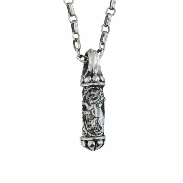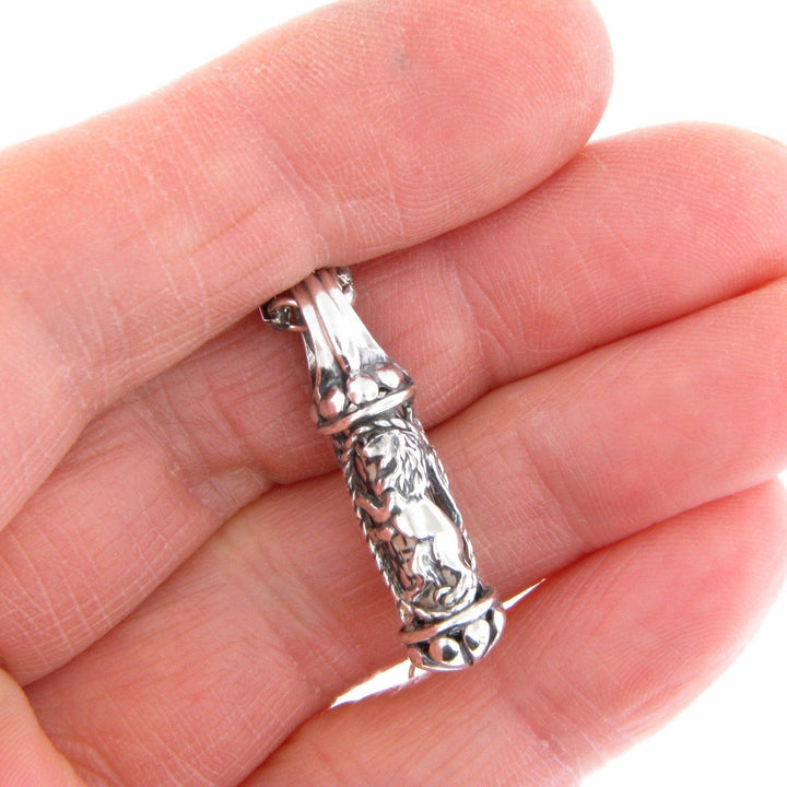 Lion Of Judah Mezuzah Pendant Necklace Silver Rolo Chain Shema scroll on Antique Rolo Chain