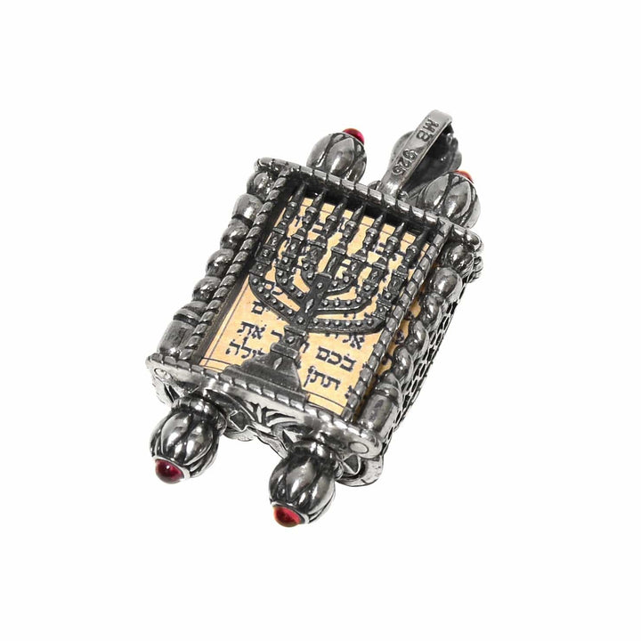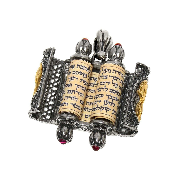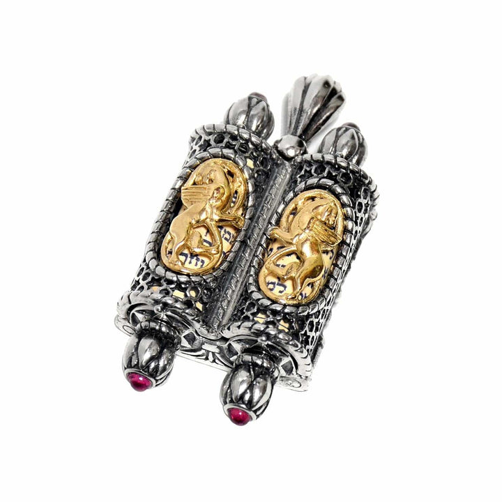 Lion of Judah Torah Scroll Pendant Silver 14K gold Garnets Shema scroll Mens