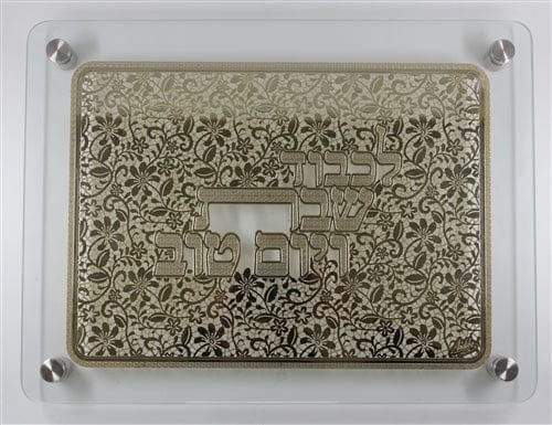 Tempered Glass Challah Tray On Legs With Lazer Cut Design - Gold - ACT1301G - 15.5W xl 11.75L 1.5H