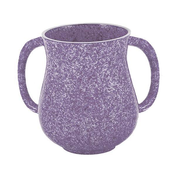 Netilat Yadayim Cup - Faux Marble - Purple made in Israel. Emanuel's Judaica art gift is designed and crafted in the Jerusalem studio. We'll gift box and wrap it for you. Yair Emanuel's refreshing colors & designs are a fusion of traditional motifs, ancient texts & manuscripts, Israeli themes, and oriental art. Yair Emanuel uses various techniques from hand painted wood and silk to hand embroidery and laser cut metals. If you would like this item in quantities contact us directly for special orders. Fabulous quality and service you can expect by ahuva.