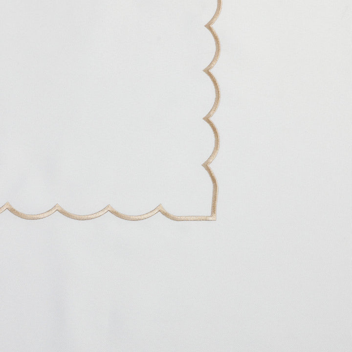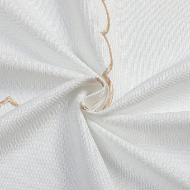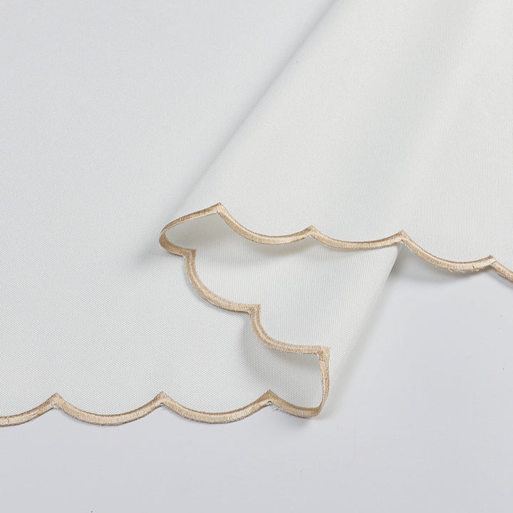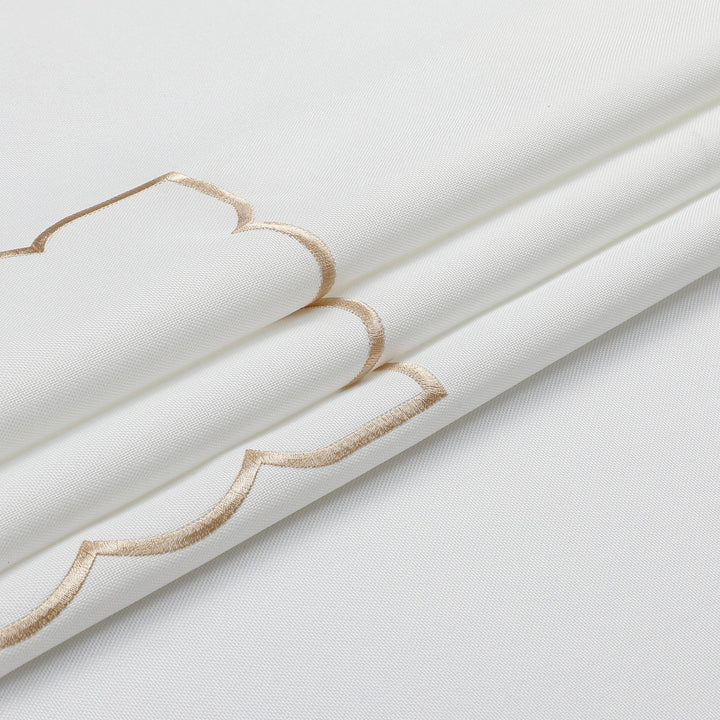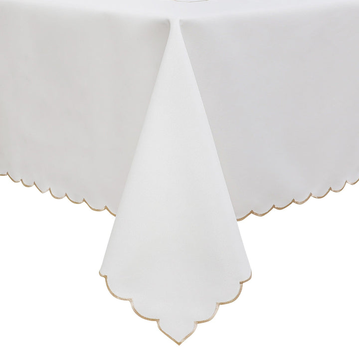 Tablecloth Poly (Linen Look) - White with Gold Scalloped Edge and Center Frame