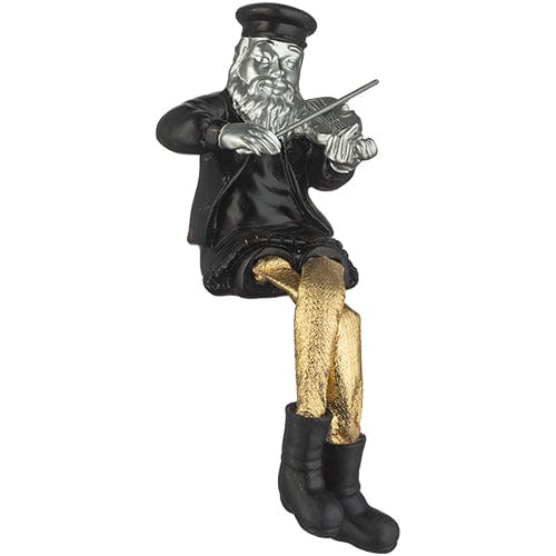 חסיד יושב מפוליריזן שחור עם רגלי בד כסף 25 ס"מ מנגן בכינור