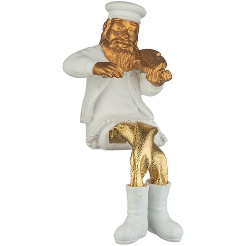 חסיד יושב מפוליריזן לבן עם רגלי בד זהב 25 ס"מ מנגן בכינור