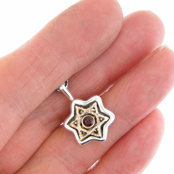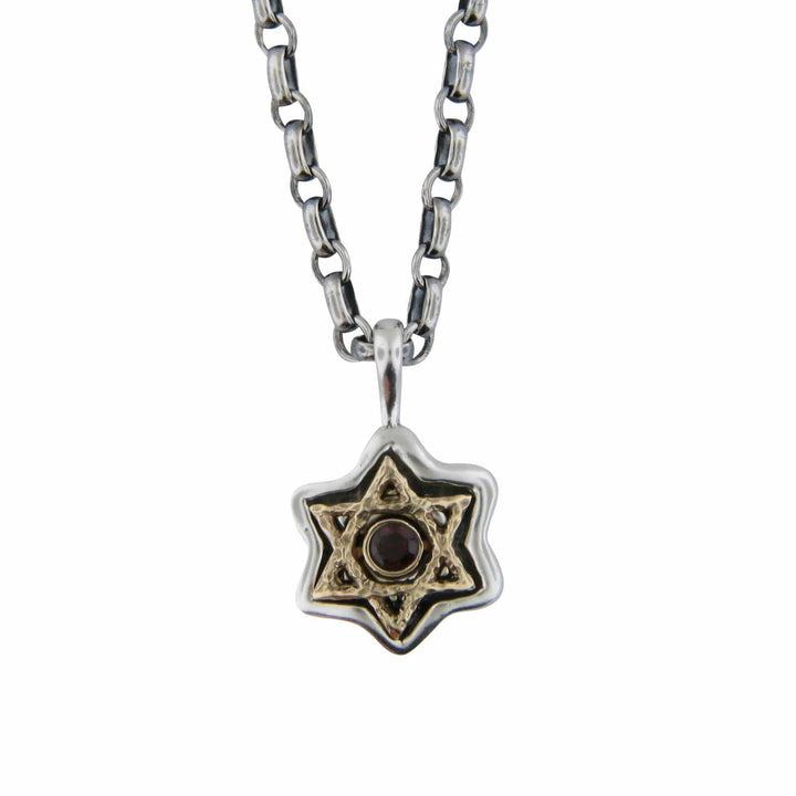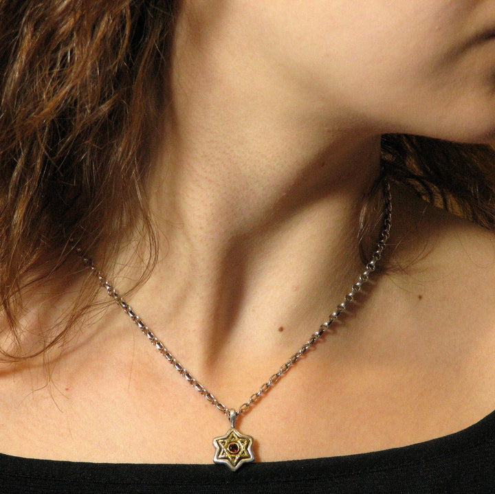 This sterling silver Star of David necklace for men is great way to celebrate your love and your heritage. There are many ideas as to what the symbolic meanings of the Star of David are. Some Kabbalists believed that the six points represented God's absolute and infinite power over the universe in all six directions: north, south, east, west, up and down. Kabbalists also believed that the triangles represented humanity’s dual nature (good and evil) and that the star could be used as protection to ward off against evil spirits. The structure of the star, consisting of two overlapping triangles, has also been thought to represent the relationship between God and the Jewish people. The star, which points up, symbolizes God and the star, which points down, represents us here on earth- Materials: Silver, 14K gold,