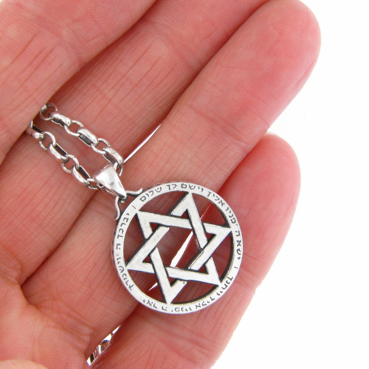 Star of David Pendant Necklace Silver on Antique Rolo Chain