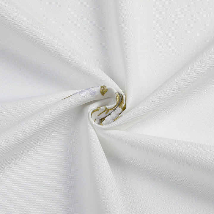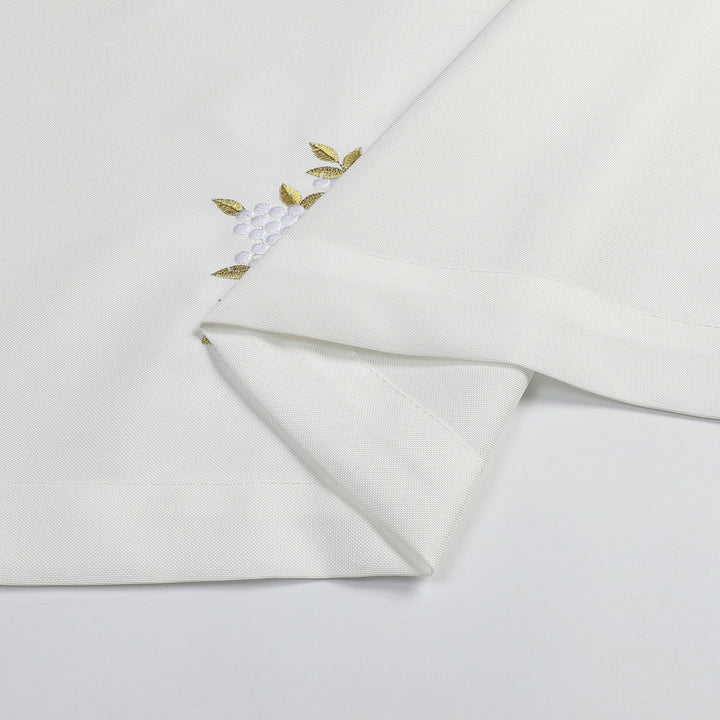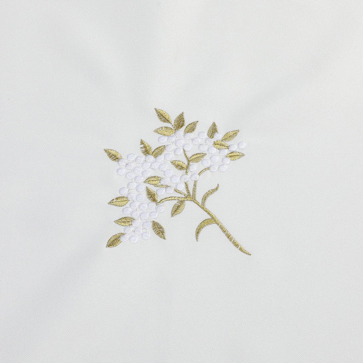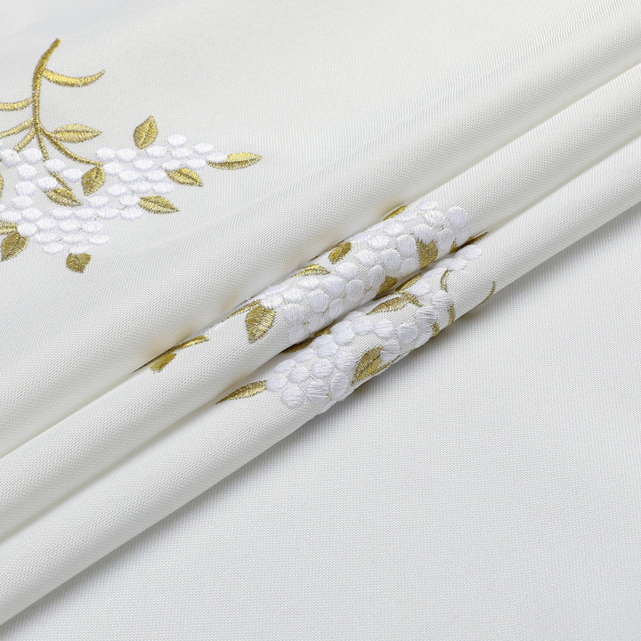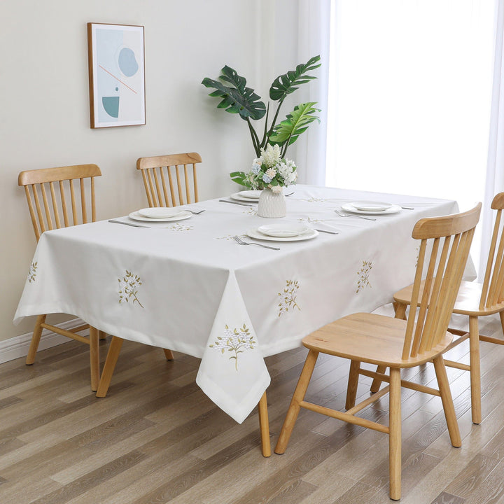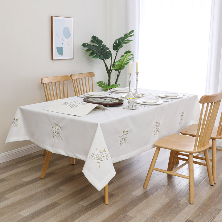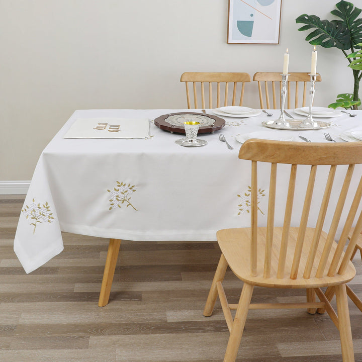 Tablecloth Poly (Linen Look) - White with Embroidered Flowers (Gold and White)