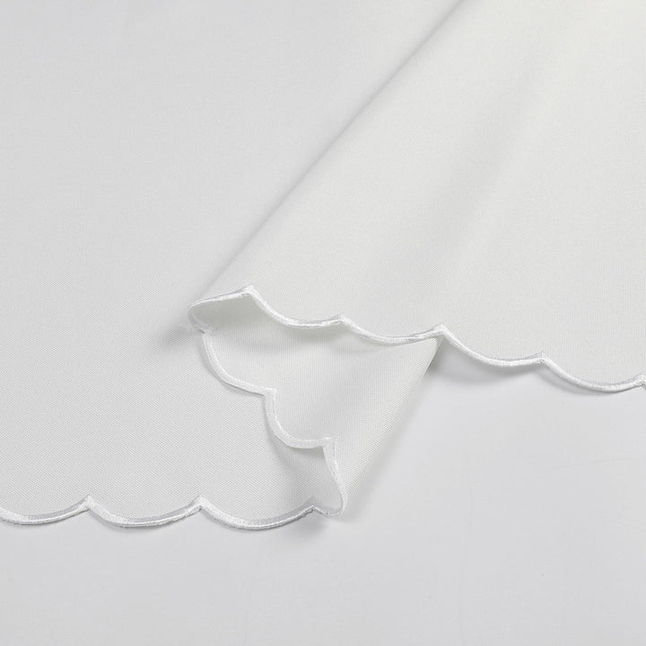 Tablecloth Poly (Linen Look) - White with White Scalloped Edge and Center Frame