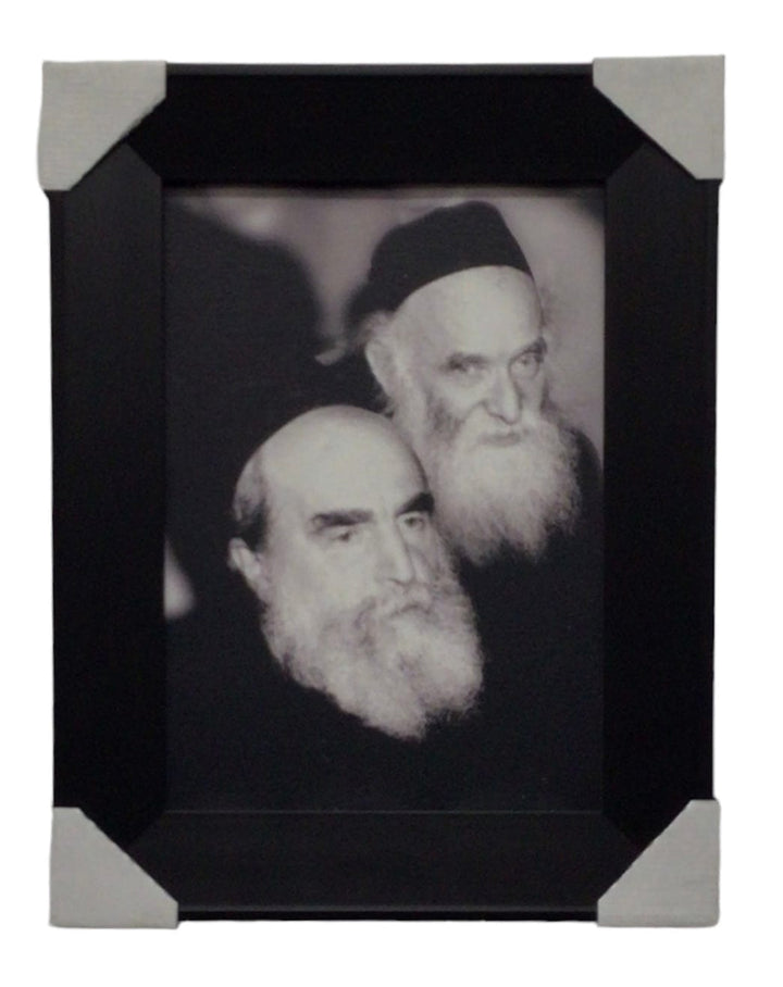 Painting of R' Moshe Feinstein & R' Aron Kotler, Size 10x14, Modern Brown Frame