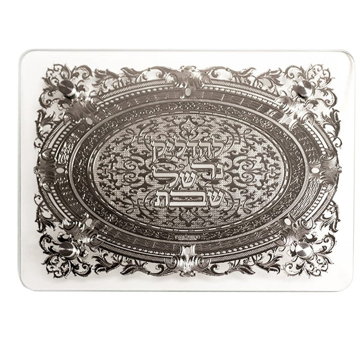 Embroidered on the tray is the phrase "Lehadlik Ner Shel Shabbos."