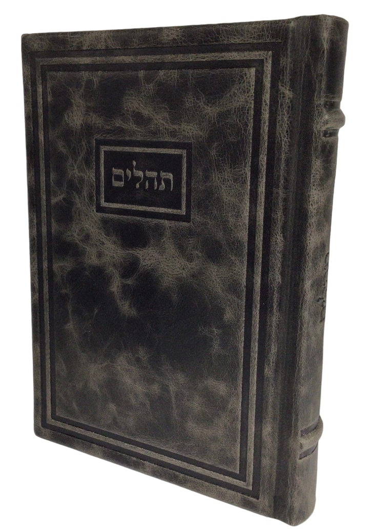 Antique Leather Tehillim Hameforash, 7x10, Modern Design, Grey