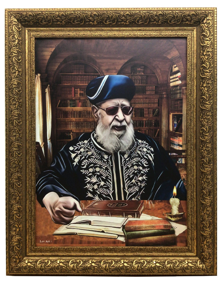 Framed Canvas of Rav Ovadia Learning-Portrait, Size 20x28" with Gold Frame