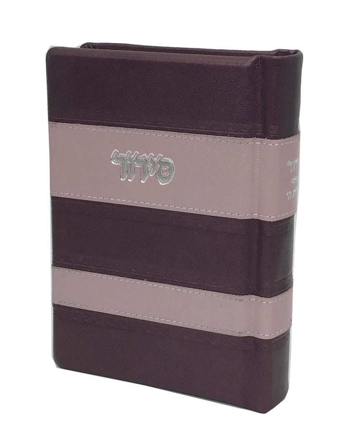 Leather Siddur Tehillas Hashem, Striped design, Maroon/Pink 5x7"