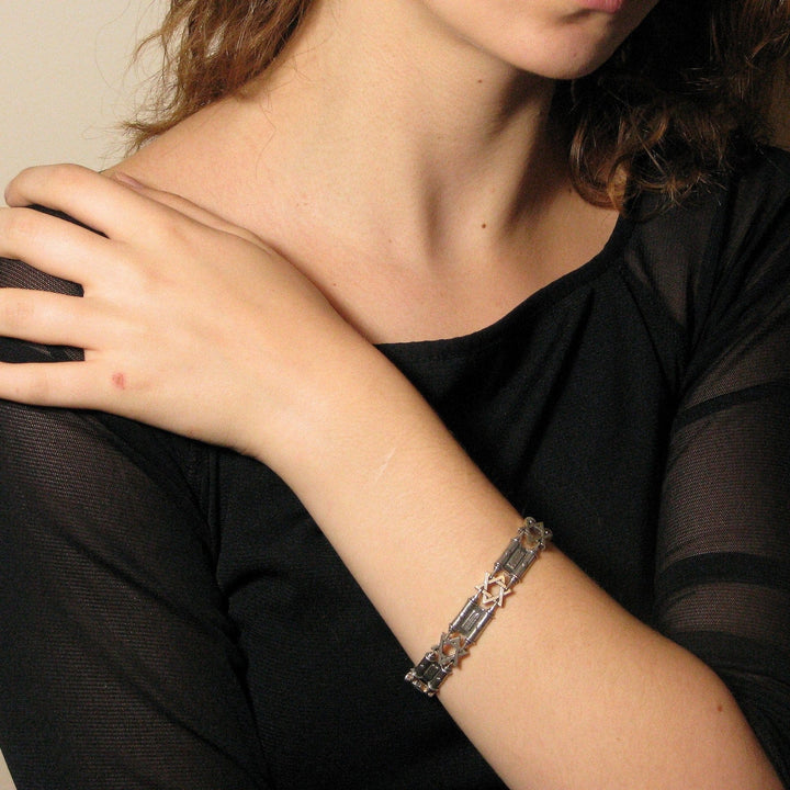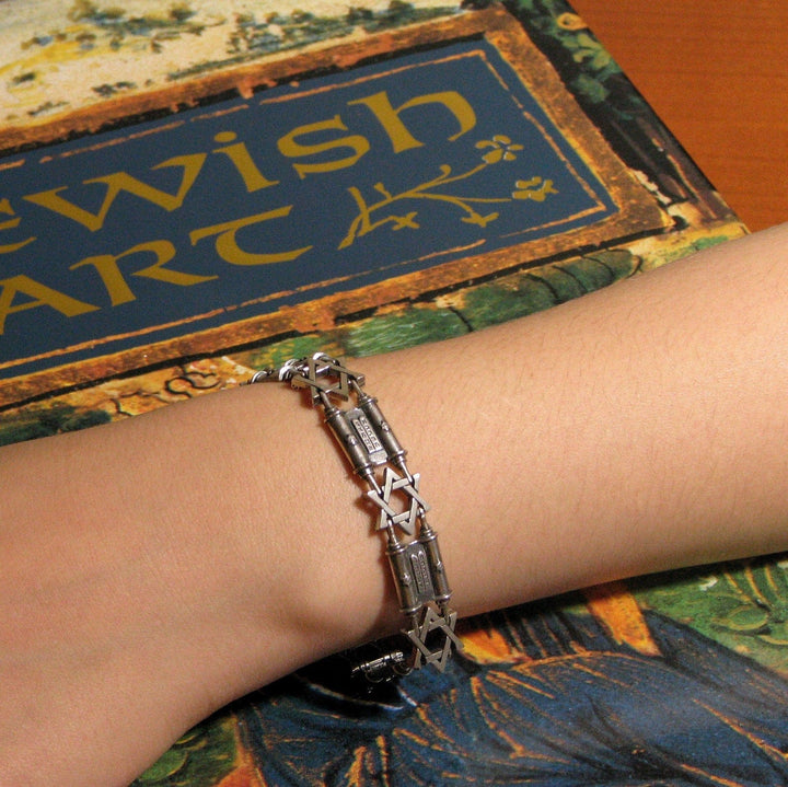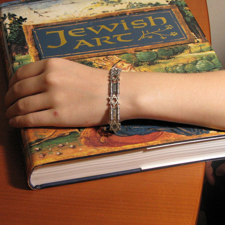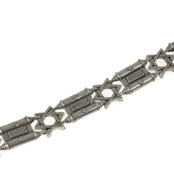 Torah Scrolls and Stars Of David Bracelet Silver 7" Womens
