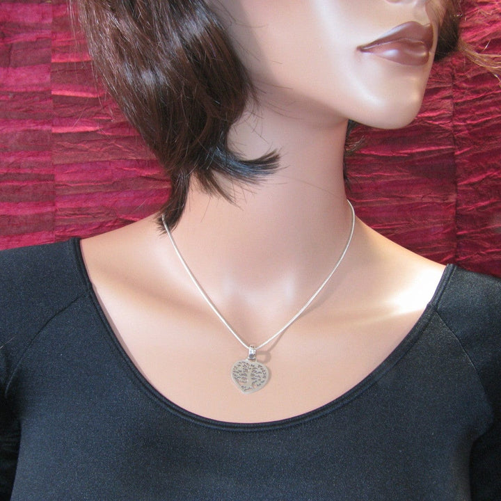 Tree of Life Pendant Necklace Silver Rolo Chain