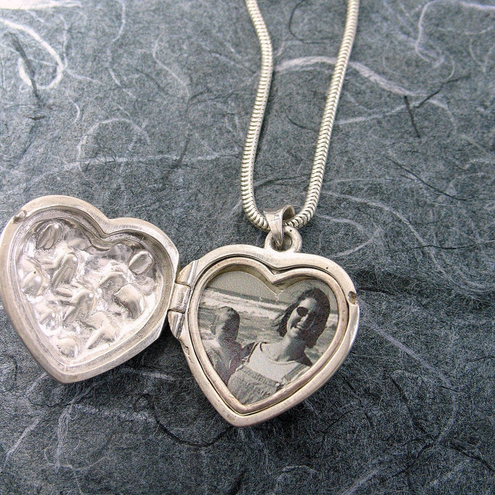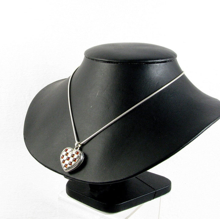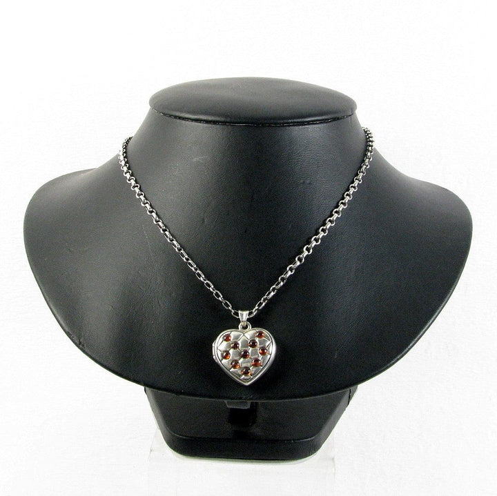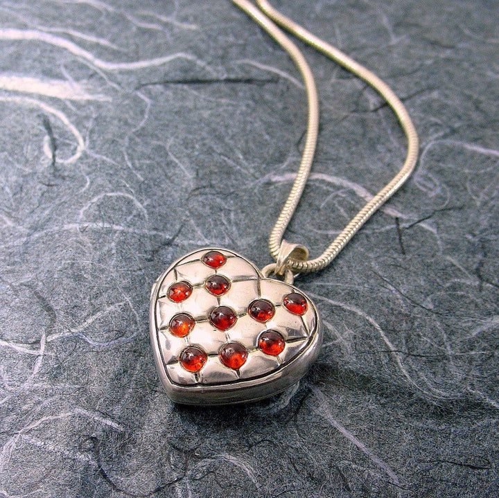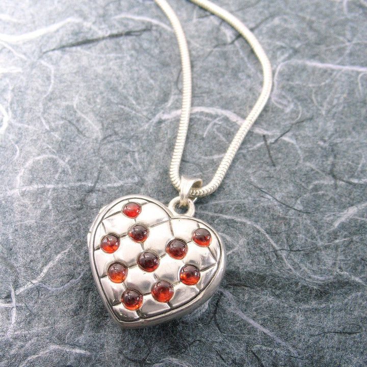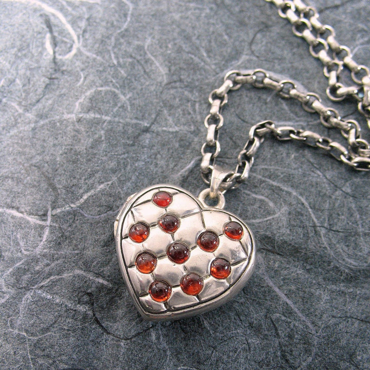 Victorian Quilted Heart Locket Sterling Silver Garnets