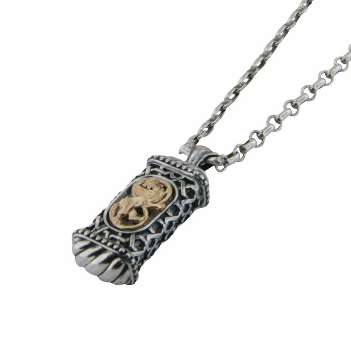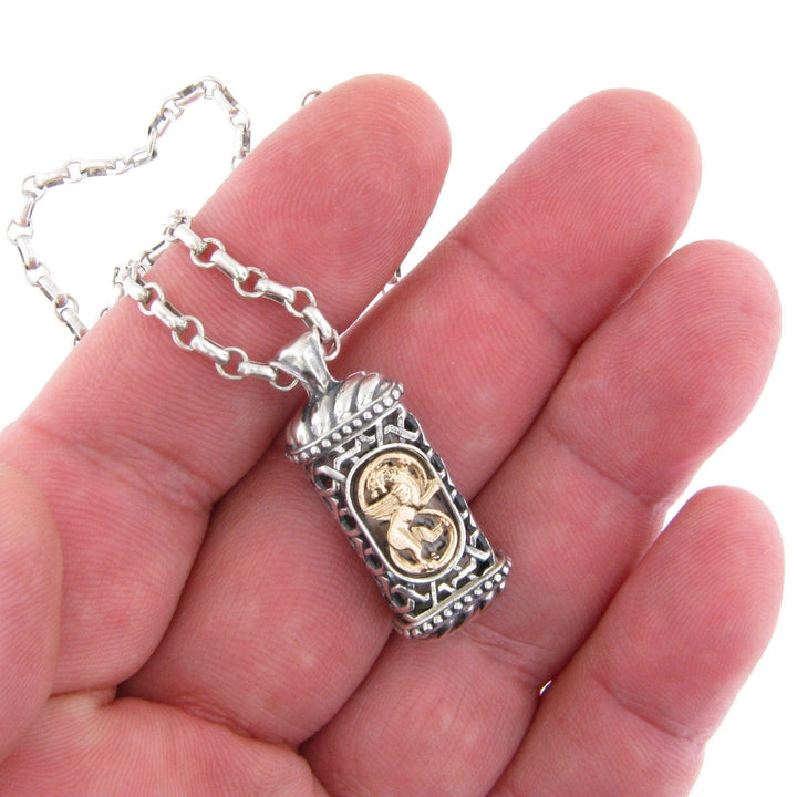 Winged Lion of Judah Mezuzah Pendant Necklace Silver 14K gold Shema scroll on Antique Rolo Chain